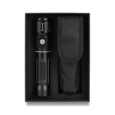 Doskonała latarka dla wymagających o strumieniu światła 250 lumenów i zasięgu 200 metrów, dioda CREE XPG (5 W). Wyposażona w wysuwany panel roboczy zasilany 16 diodami COB (3W) 160 lumenów o żywotności 100 000 godzin. Magnes umieszczony u podstawy. Funkcja zoom. Nylonowe etui. Zasilana 4 bateriami AAA (dołączone). Pakowana w upominkowe opakowanie.