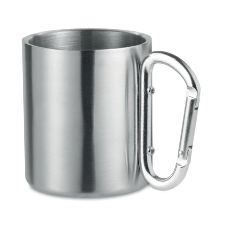 - Kubek ze stali nierdzewnej, z uchwytem w postaci karabinka. Posiada podwójne ścianki. Pojemność: 220ml.