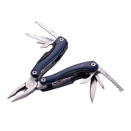 - Narzędzie 9-funkcyjne pakowane w poliestrowe etui. Ostrza wykonane ze stali nierdzewnej. Narzędzie zawiera: piłę, wkrętaki płaskie, otwieracz do konserw, pilnik, szczypce uniwersalne, skrobak do ryb z końcówką do haczyków wędkarskich, otwieracz do butelek