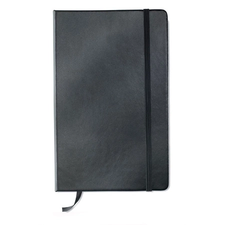 - Notes A5 w twardej okładce z PU. 192 stron z papieru recyklingu w linie (96 kartek). Dopasowany elastyczny pasek zamykający i tasiemka do oznaczania stron.