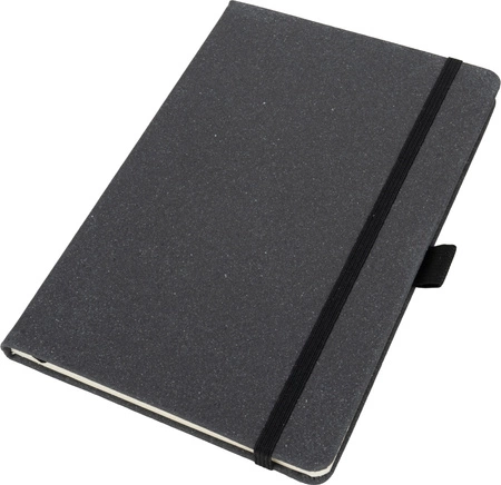 - Notes o formacie A5, wykonany ze skóry pochodzącej z recyklingu z zamknięciem na gumkę. Wewnątrz znajduje się 160 kartek w linie.