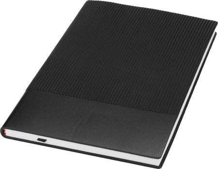 - Notes A5 z 200 stronami w kratkę w miękkiej oprawie PU z podwójną tasiemką pełniącą funkcję zakładki.