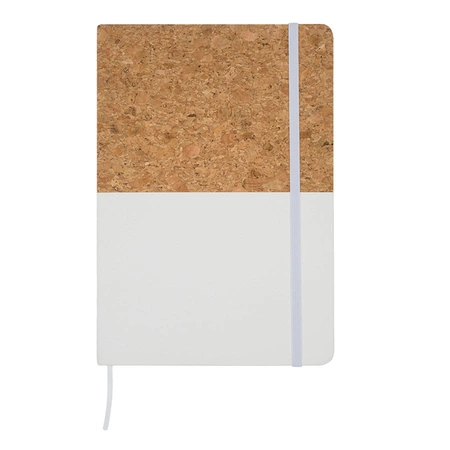 - Stylowy notes w twardej oprawie łączącej naturalny korek z eleganckim PU. Rozmiar biurkowy. 80 kartek, gramatura papieru 70 g/m2. Zamykany elastyczną taśmą.