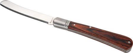 Składany nóż do masła, wykonany ze stali nierdzewnej, z drewnianą rękojeścią. Przydatny podczas podróży.