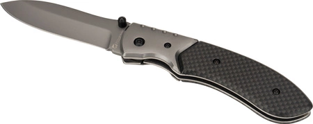 - Kieszonkowy nóż ze sprzączką, wykonany z włókna węglowego i metalu.