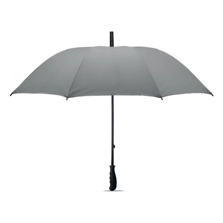 23-calowy manualny, odblaskowy parasol przeciwwiatrowy z trzonkiem i żebrami z włókna szklanego. Gumowana rączka w kolorze czarnym.