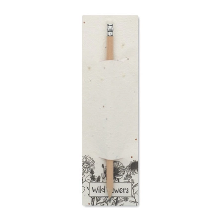 - Ołówek z naturalnego drewna z gumką. Zapakowany w saszetkę z papieru siewnego (polne kwiaty).