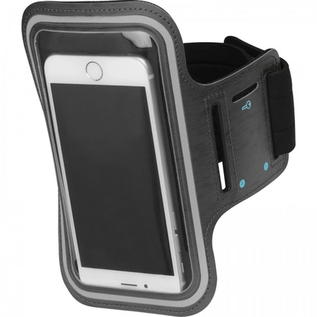 - Opaska na telefon zakładana na ramię - idealna np. do biegania. Możliwość regulacji - dwa rozmiary. Posiada kieszonkę na klucze. Wykonana z PU i plastiku.