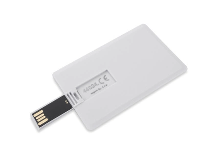 Przenośna pamięć USB 16 GB w kształcie karty kredytowej. Standard USB 2.0, szybkość zapisu 4 MB/s, odczytu 15 MB/s. 5-letnia gwarancja producenta, certyfikat CE. Idealna do przechowywania w portfelu.