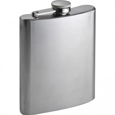 Piersiówka ze stali nierdzewnej z bezpiecznym zamknięciem, pojemność 237 ml.