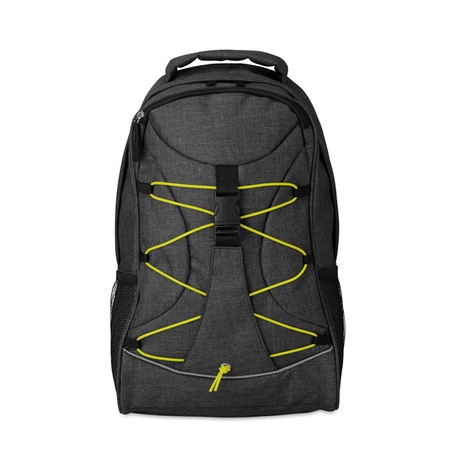 Plecak wykonany z 2-kolorowego poliestru 600D z kontrastującym kolorowym sznurkiem świecącym w ciemności. Siatkowe kieszenie po obu stronach.