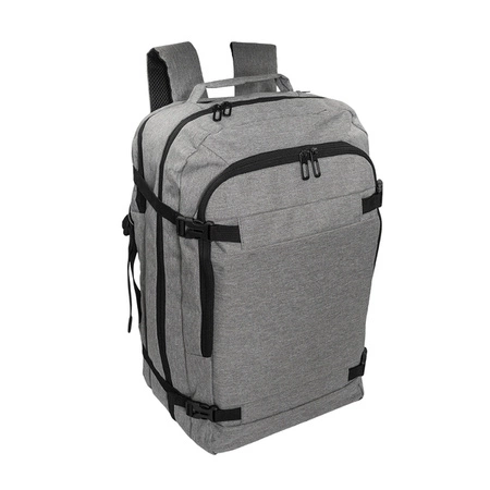 Plecak z miękką przegrodą na laptop 17". Wyposażony w główną komorę oraz przednią kieszeń zamykaną na zamek błyskawiczny. Wmontowany port USB, do którego można podpiąć powerbank i podładować telefon (wewnętrzny kabel dołączony w zestawie). Duża ilość przegródek. Z boku i u góry plecaka umieszczono dwa miękkie uchwyty, dzięki którym można go przenosić w ręku - jak torbę.