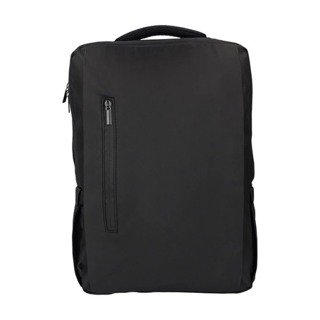 - Plecak wykonany z tkaniny powlekanej PVC. Posiada osobną komorę na laptop 16" oraz tablet 11"; pojemną komorę główną z wewnętrzną kieszenią z siateczki. Z przodu znajduje się dodatkowa kieszeń zamykana na zamek. Plecak wyposażony jest w dwie kieszenie boc