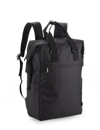 - Plecak DEMOKO - oryginalny i funkcjonalny, z szerokim zamknięciem na suwak, wygodnymi rączkami i praktycznymi kieszeniami. Profilowane plecy, miejsce na laptop 17". Wykonany z poliestru 600D rPET.