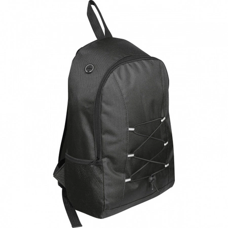 Plecak wykonany z poliestru 600D, pochodzącego z recyklingu. Plecak posiada uchwyt do przenoszenia, dwie siatkowe kieszenie boczne i watowane szelki.