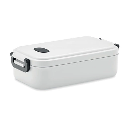 - Lunch box z PP ze szczelną pokrywą, silikonowym zaworem i dwoma bocznymi klamrami. Pojemność: 800 ml.