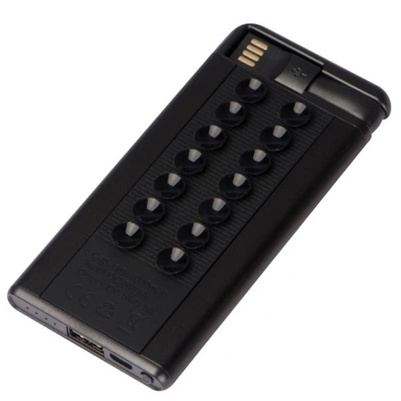 - Power bank z przyssawkami umożliwiającymi przymocowanie go do obudowy telefonu. Power bank wyposażony w kabelek 2w1 kompatybilny z urządzeniami Android oraz iOS. Pojemność 4000 mAh.