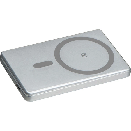 Power bank o pojemności 5 000 mAh z funkcją ładowania indukcyjnego do smartfonów z techologią Qi i do iPhone’ów. Posiada funkcje Magsafe, kompatybilną z iPhone’ami nowszej generacji, dzięki której telefon przylega do powerbanka, ułatwiając ładowanie bez k