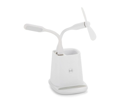 - Przybornik na biurko BERGO to idealny gadżet do pracy z ładowarką bezprzewodową, stojakiem na telefon i portami USB. Może działać jako hub. Dane techniczne: USB-C 5V/2A, ładowarka 5W, 2x USB 5V/2A (maks.).