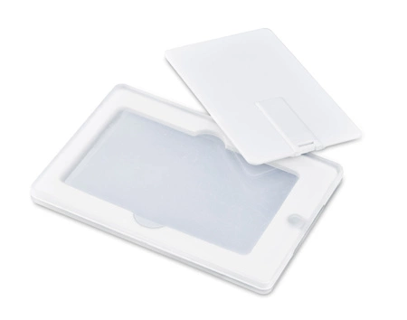 Praktyczne pudełko na USB kartę z logo metodą tampodruku, zapewniające ochronę i bezpieczeństwo. Idealne do przechowywania i prezentacji.