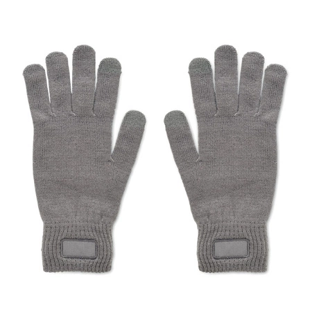 - Rękawice z miękkiego, rozciągliwego poliestru RPET z naszywką