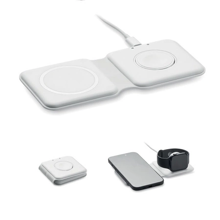 - Składana stacja ładująca 2 w 1 z ABS. Zawiera bezprzewodową ładowarkę 15W i ładowarkę do smartwatcha (tylko Apple®).