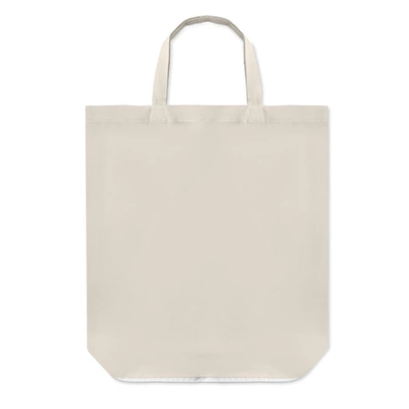 - Składana torba na zakupy z krótkimi uchwytami, wykonana z bawełny 100 g/m². Dostarczamy niezłożony produkt.