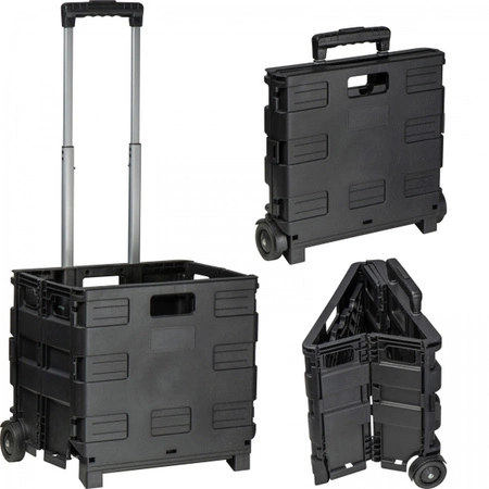 Praktyczny, składany wózek na zakupy na kółkach z rączką teleskopową. Udźwig do 25 kg.