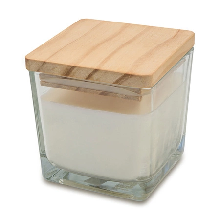 - Świeca woskowa o zapachu wanilii na bazie roślinnej w szkle, zamykana drewnianym wieczkiem. Czas palenia: 28 godzin. Waga wosku 200 g.
