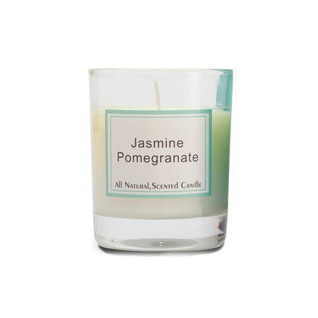 - Świeca zapachowa w szklanym pojemniku. Zapach jaśminu i granatu. Czas palenia 25 godzin. Waga wosku 125 g.