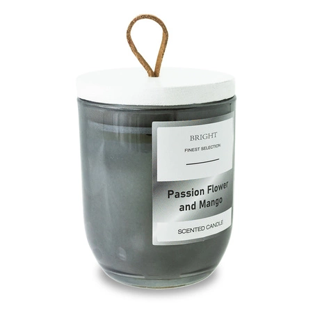 - Świeczka zapachowa w szkle, zamykana drewnianym wieczkiem. Świeczka o orzeźwiającym zapachu kwiatów i mango. Czas palenia około 24 godzin. Waga wosku 140 g.