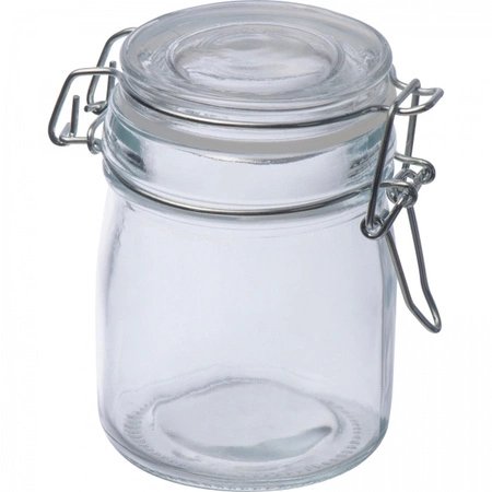 - Słoik wykonany ze szkła borokrzemianowego, z pokrywaką zamykaną na zatrzask, uszczelniany silikonem. Pojemność 150 ml.
