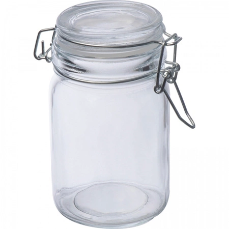 - Słoik wykonany ze szkła borokrzemianowego, z pokrywaką zamykaną na zatrzask, uszczelniany silikonem. Pojemność 200 ml.