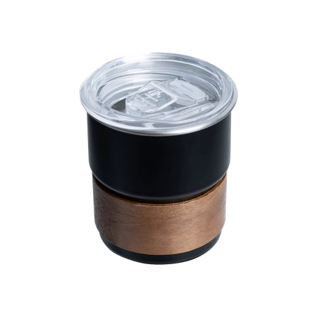- Elegancki stalowy termokubek o zachwycającym nowoczesnym designie! Drewniana osłona, przezroczysta plastikowa pokrywka oraz metalowa słomka.