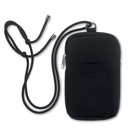 - Torba na smartfon z recyklingowanej bawełny z regulowaną smyczą z poliestru RPET i otwartą kieszenią z przodu. 280 gr/m².