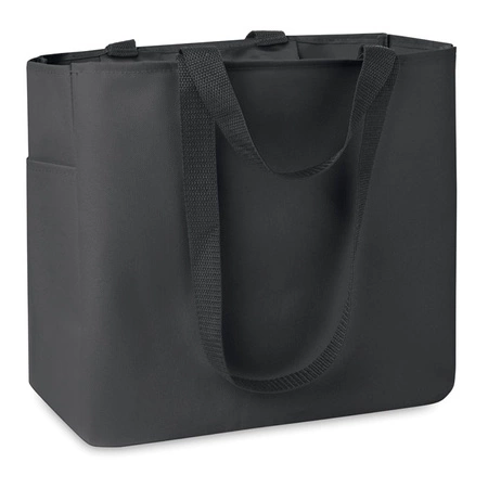 Torba na zakupy wykonana z poliestru 600D z boczną kieszonką zamykaną na zamek. Posiada długie i krótkie rączki.