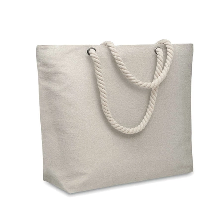 - Torba plażowa lub na zakupy z bawełny z recyklingu (80% bawełny z recyklingu, 20% zwykłej bawełny)z uchwytami ze sznurka. 220 gr/m².