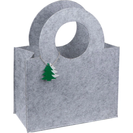 - Świąteczna filcowa torba z zawieszką w kształcie choinki, która może być miłym podarunkiem lub służyć do zapakowania innych prezentów.
