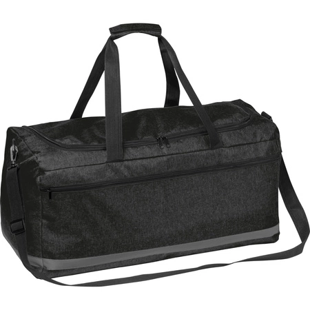 - Duża torba sportowa wykonana z poliestru 600D z odblaskowym paskiem. Torba posiada dużą komorę główną oraz boczną kieszeń zamykaną na zamek. Torbę można przenosić za pomocą uchwytów lub odpinanego, regulowanego paska na ramię.