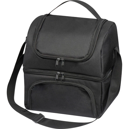 Torba termiczna z dwoma dużymi komorami, dodatkowo wyposażona w pudełko na lunch. Torba została wyposażona w długi, regulowany pasek na ramie, ułatwiający przenoszenie.
