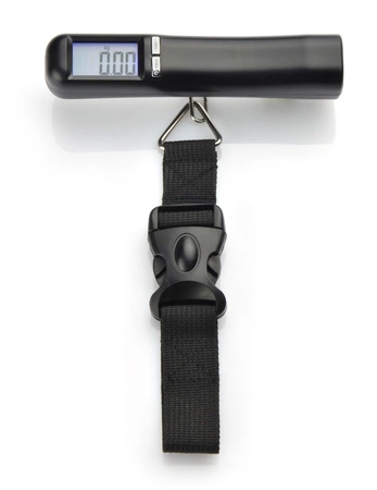 - Elektroniczna waga do walizek z wyświetlaczem w gramach, kilogramach, uncjach i funtach. Maks. zakres pomiaru: 50 kg. Idealna do podróży.