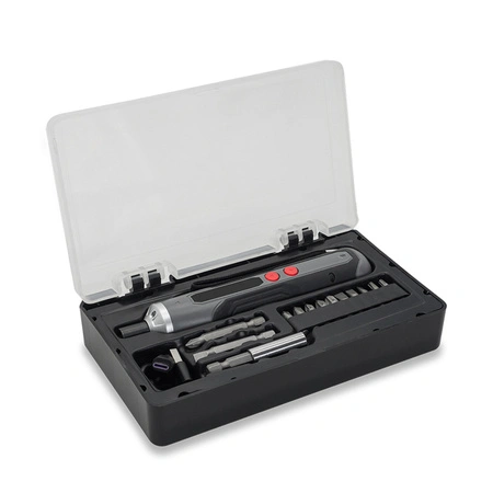 Zestaw składa się z: wkrętaka z ergonomicznym uchwytem i dwoma intuicyjnymi przyciskami kierunkowymi, umożliwiającymi łatwe wkręcanie i wykręcanie. Zestaw zawiera także 10 końcówek w różnych rozmiarach, 4 dodatkowe przedłużki, magnetyczną przedłużkę oraz kabel USB do ładowania. Całość w solidnym etui. Urządzenie doskonale sprawdza się w pracach montażowych, serwisowych, przy składaniu mebli, w elektronice oraz modelarstwie. Bateria akumulatorowa 1300mAh, moment obrotowy 3 Nm. Prędkość 250 obr./min.