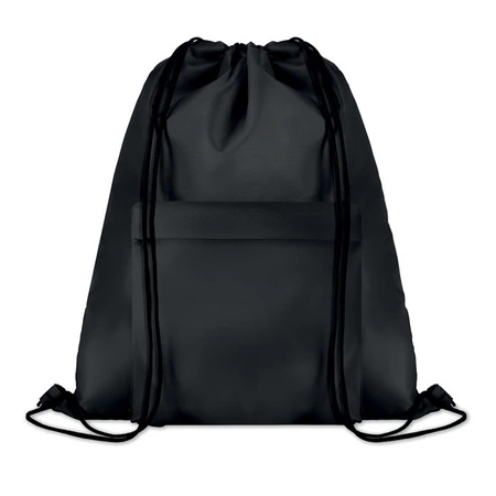 Duży worek/plecak z poliestru 210D, z przodu kieszonka na zamek. Znakowanie sublimacją jest możliwe tylko na białych produktach.