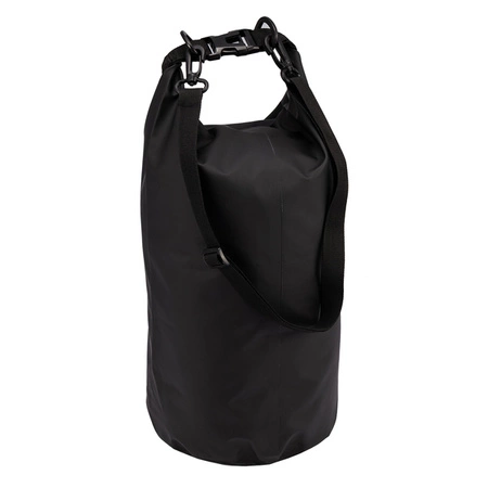 - Wodoodporny worek o gumowanej powierzchni. Pojemność 10 litrów. Wyposażony w szczelne rolowane zamknięcie i odpinany pasek na ramię.