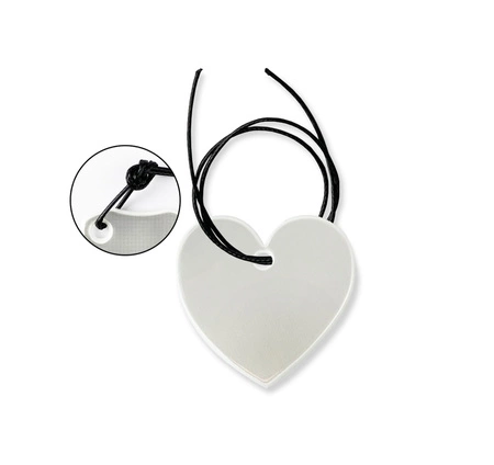 Zawieszka odblaskowa REF-HEART w kształcie serca to idealny nośnik reklamowy do przyczepienia przy plecaku lub ubraniu. Bezpieczne mocowanie na sznureczku poliestrowym. Wyprodukowana w Polsce zgodnie z normami UE dot. chemikaliów.
