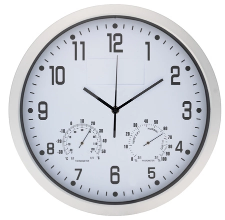 Zegary firmy CrisMa cechuje wysoka wytrzymałość i elegancki wygląd. Ten model, oprócz wskazywania godzin, pokazuje temperaturę oraz wilgotność powietrza. Estetyczna i wytrzymała obudowa, cichy mechanizm zasilany wyłącznie jedną bateria AA. Brak baterii w