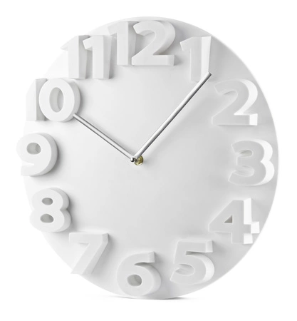 Nowoczesny zegar o wypukłych cyfrach, zapewniający doskonałą widoczność godziny. Idealny dodatek do nowoczesnego wnętrza.