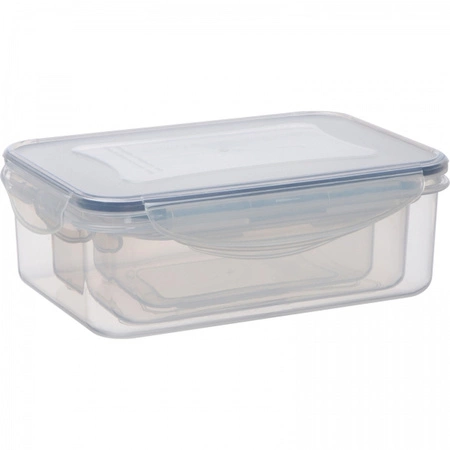 Zestaw pojemników do przechowywania żywności składający się z 3 szt. Pojemniki wykonane z plastiku ze szczelnym zamknięciem. Rozmiary pojemników: duży 1,5l; średni 1l; mały 0,5l.