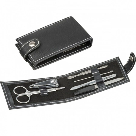 - Zestaw do manicure składający się z 7 przyborów, całość zapakowana w skórzane etui.