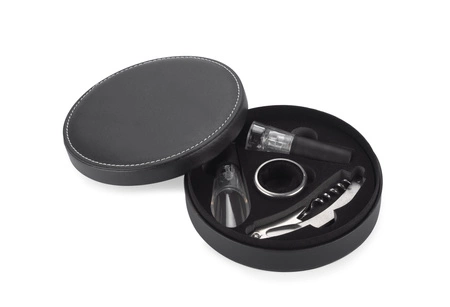 - Elegancki zestaw do wina z próżniowym korkiem, nalewakiem, otwieraczem i opaską na butelkę. Przechowuj wino dłużej i uwalniaj jego aromaty dzięki funkcjom zestawu.